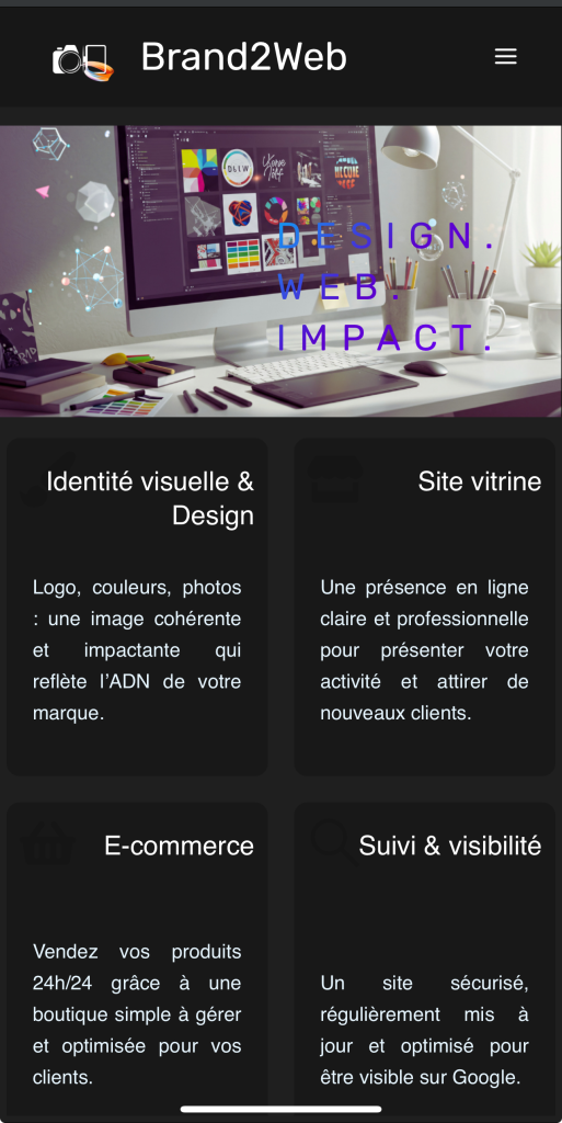 Avec Brand2Web, vous n’êtes pas seuls : nous créons avec vous une image qui vous ressemble, qui inspire confiance et qui vous aide à vous démarquer.